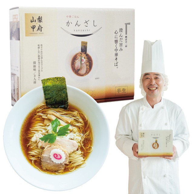 テレビ番組でご紹介いただき、ご来店いただいた大勢の方にお喜びいただいております。 いつも本当にありがとうございます。 行列や待ち時間をいただき、大変ご迷惑おかけし申し訳ございません。 もっともっと多くのお客さまに、当店自慢の味を気軽に味わっていただきたいと、箱入り半生麺タイプのお土産品をご用意しました。 「中華ごはん かんざし」監修の箱入り中華そば。 店で提供するあの味を、保存性の高い半生タイプの麺で完全再現しました。 雑味がなく香ばしいスープは、鶏ガラ出汁と醤油の旨みを存分に味わえます。 ストレートな細麺は加水率低めでしなやかにスープと絡み、啜り心地のよい食感が特徴的。 贈答品としても喜ばれる箱入り3食セットです。 ※盛り付けはイメージです。具材は入っておりません。 名称:半生ラーメン(3食入り) 原材料名:めん(小麦粉(国産製造)、小麦たん白、還元水飴、食塩、卵白/加工澱粉、酒精、かんすい、(一部に小麦・卵を含む)) 添付調味料(チキンエキス、醤油、チキンオイル、ラード、食塩、たん白加水分解物、みりん、発酵調味料、ナンプラー、砂糖、りんご酢、ポークペースト、しいたけエキス、酵母パウダー、香辛料/酒精、調味料(アミノ酸等)、カラメル色素、酸味料、(一部に小麦・大豆・鶏肉・豚肉・ゼラチン・りんごを含む)) 内容量:465g(めん:100g×3、添付調味料:55g×3) 賞味期限:製造より90日 保存方法:直射日光、高温多湿を避けて保存してください。 使用上の注意:開封後はお早めにお召し上がりください。 製造者:株式会社アイランド食品 香川県綾歌郡綾川町滝宮1801-1 共同開発:中華ごはん かんざし 山梨県甲府市上石田1-8-1 栄養成分表示 1食(めん100g、添付調味料1袋)当り エネルギー:442.0kcal たんぱく質:15.4g 脂質:14.9g 炭水化物:61.7g 食塩相当量:6.5g (この表示は推定値です。) 【ご注意ください】 ※おひとりさま1日2箱まで できるだけ大勢のお客さまにお召し上がりいただくために、販売数量を制限させていただいております。 ※1日限定10箱販売 人手不足のため1日の配送数を制限させていただいております。 ※商品はご注文から5日以内に発送いたします。 ご理解ご協力のほど、よろしくお願いいたします。